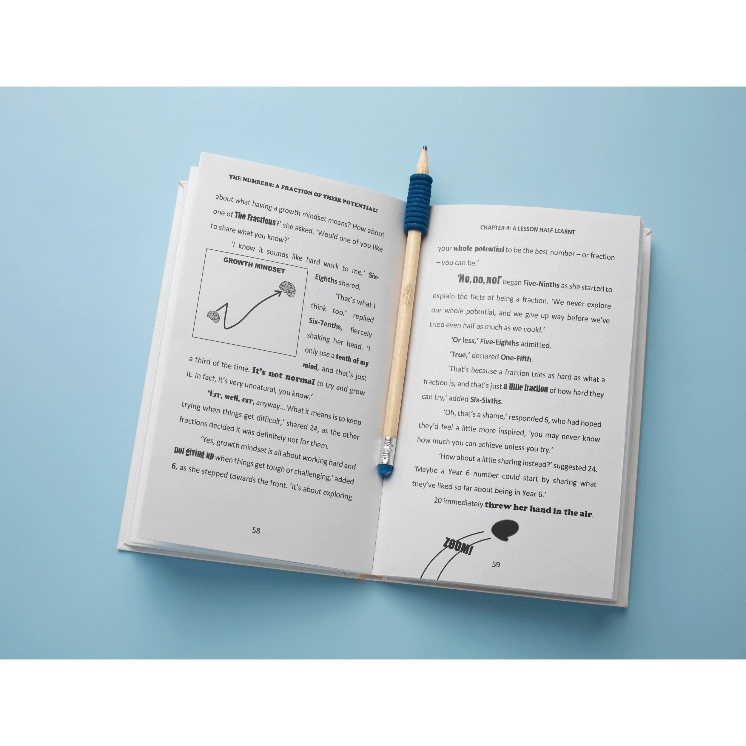 The Fractions - distant cousins of The Numbers - had never really experienced doing anything wholly: just half a job here, a quarter of the effort there. However, along with their half-hearted ways, many were afraid to experience life to the full. So, in this third book of the series, when they come to visit, 0 and the other role models set out a plan... to help The Fractions expand their old mind-sets and live up to their whole potential!