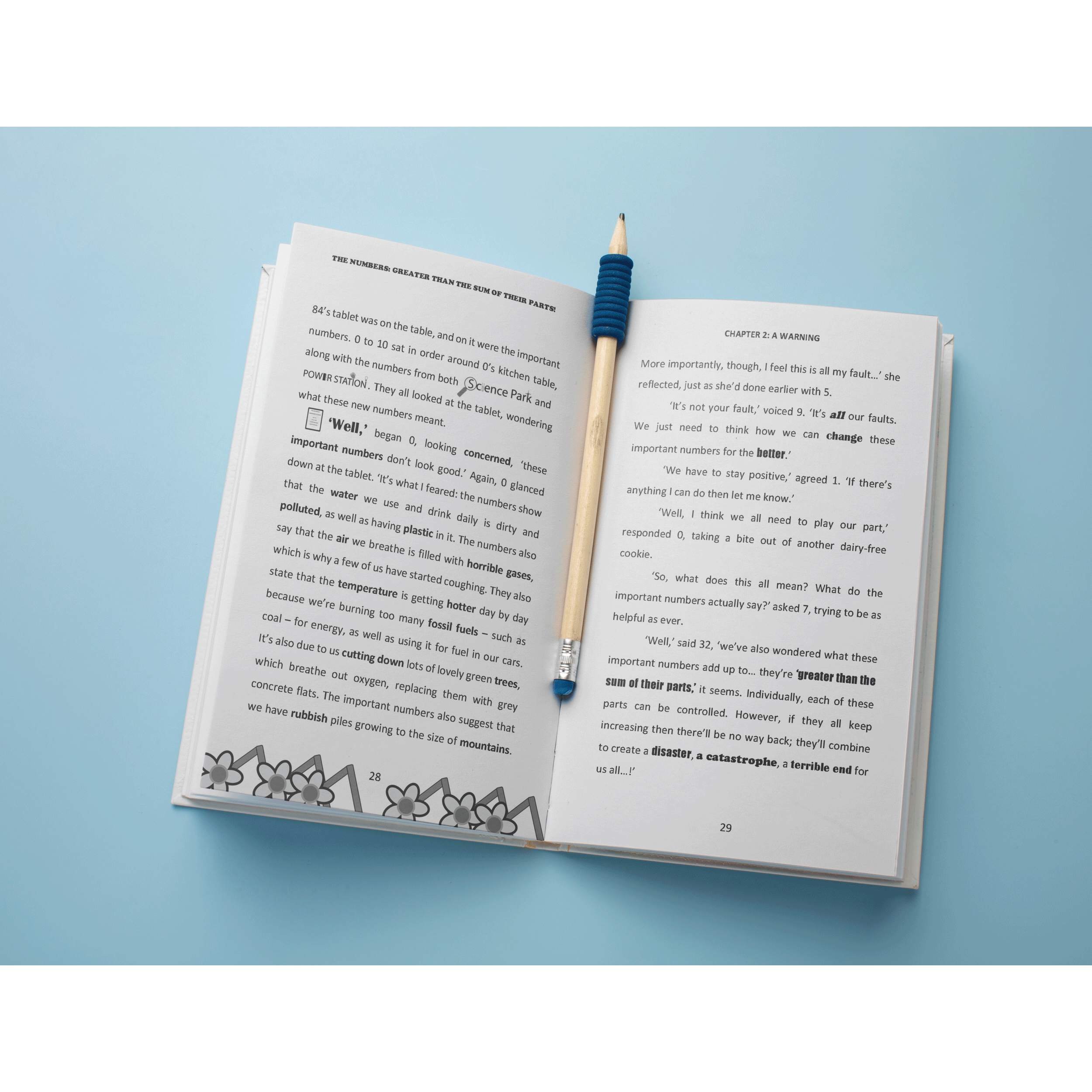 Some important numbers had been seen over at Science Park. Things were not looking good. The town had expanded rapidly after The Numbers became ordered, but unfortunately, so had the piles of rubbish, the amount of plastic used, and, of course, the polluting bad gas which caused a cough-inducing haze across the town. Things needed to change - fast. Working together, The Numbers came up with a plan to solve the problem. But was their attempt of the ‘big switch over’ going to make a difference? They only had until next Saturday evening to find out.