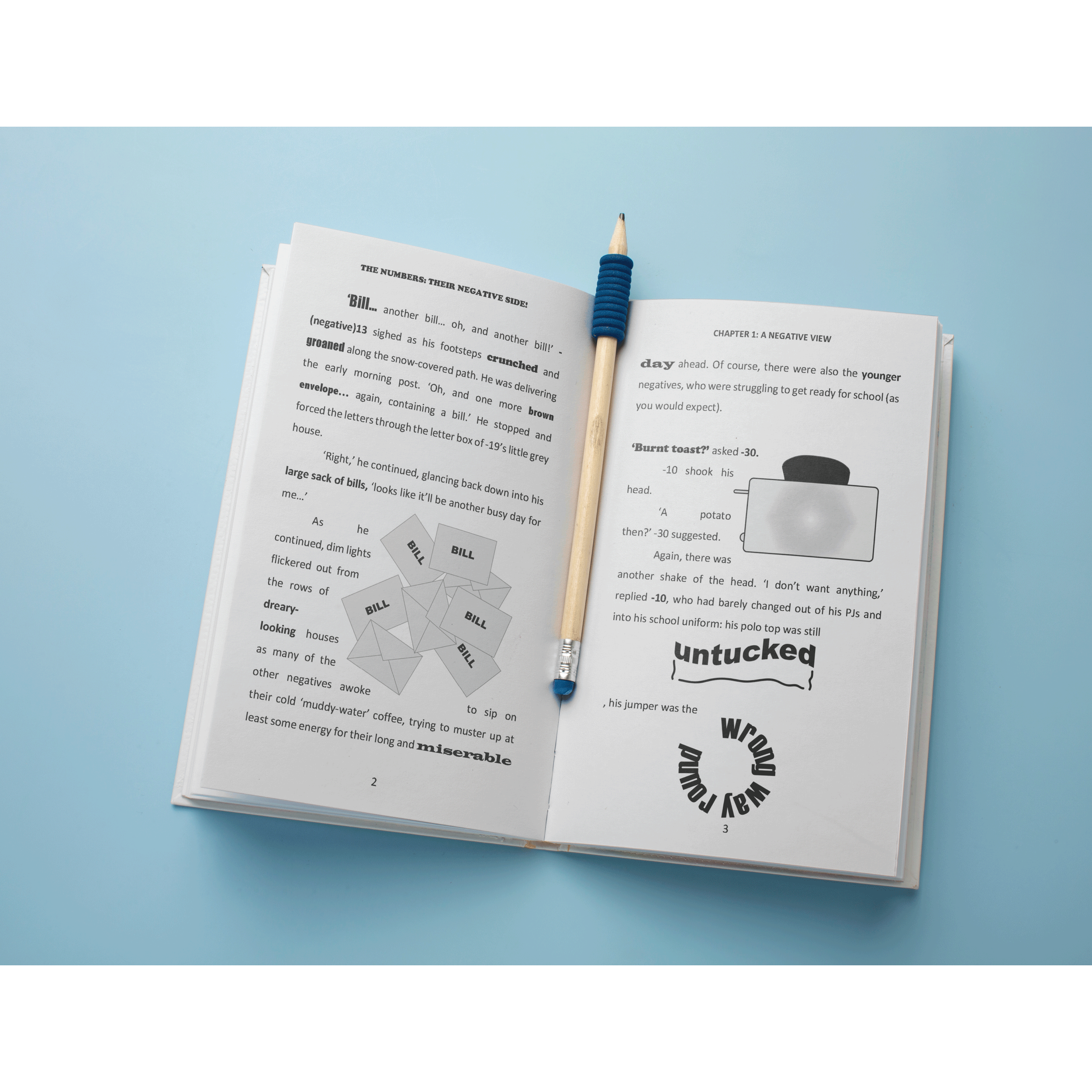 It was cold...negatively cold! So, when The Numbers and Fractions arrived on the other side of the world, they couldn’t wait to start on the Sunshine Building to bring some light and warmth into this dreary land. However, as they started to build a little hope for The Negatives, they realised that it was not entirely the cold weather and cabbage sandwiches that were making their friends so miserable. With little Negatives being naughty at school, and many big Negatives working in such badly paid jobs, could things really change for them on the dark side of the world? The Numbers and Fractions wouldn’t be here if they didn’t believe it...