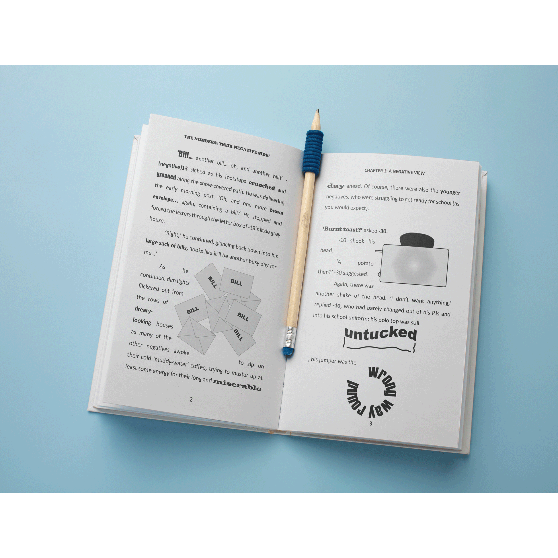 It was cold...negatively cold! So, when The Numbers and Fractions arrived on the other side of the world, they couldn’t wait to start on the Sunshine Building to bring some light and warmth into this dreary land. However, as they started to build a little hope for The Negatives, they realised that it was not entirely the cold weather and cabbage sandwiches that were making their friends so miserable. With little Negatives being naughty at school, and many big Negatives working in such badly paid jobs, could things really change for them on the dark side of the world? The Numbers and Fractions wouldn’t be here if they didn’t believe it...
